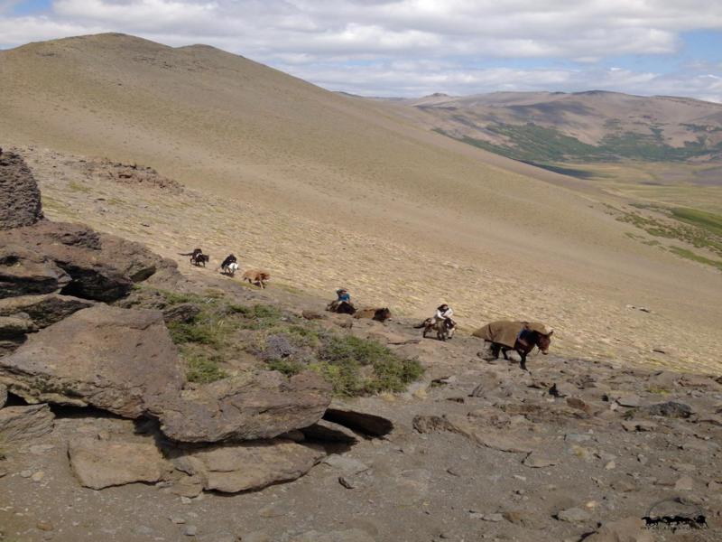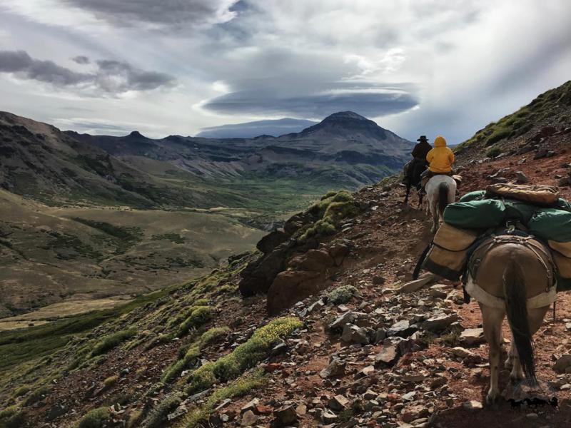 - Amanecerán temprano para poder desayunar, preparar los caballos y levantar el campamento. Seguirán un sendero que a través de un paso de montaña los conducirá a un valle desde donde podrán apreciar las vistas de los volcanes de Argentina y Chile. Se llegará a una altura máxima de unos 2.000 metros. Seguirán andando y bajando hacia el Valle Cerro Negro donde se encuentra la Laguna Negra, y a una media hora andando de aquí se encuentran los puestos de campo de la veranada. Recordemos que durante el verano se lleva la hacienda a pastar a los valles de las montañas, ya que estos valles al tener mucha nieve en invierno son muy fértiles; mientras en que en el invierno la hacienda se traslada a las tierras bajas donde la cantidad de nieve acumulada es menor y el ganado puede pastar. Para poder controlar la hacienda en el verano los gauchos se mudan a puestos ubicados en las montañas. Lejos del lujo pero con todas las comodidades, aquí en el puesto encontrarán bancos para sentarse y baños y es una gran oportunidad para conocer sobre la cultura de campo en Argentina. Acamparán acá y pasarán las dos próximas noches aquí. La idea de los próximos dos días es relajarse, cabalgar en los alrededores, nadar en la laguna y si el clima lo permite aquéllos más experimentados pueden meterse al agua con los caballos. Además son días para conectar con los caballos, relajarse en los pastos y leer junto a ellos. Por las noches, alrededor del fuego podrán compartir historias con los guías y compañeros de viaje.