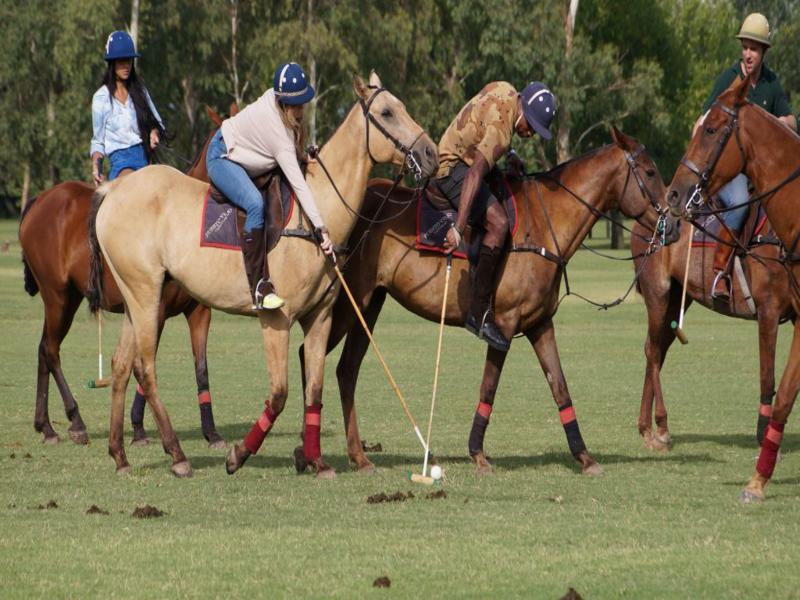 - Polo lessons: once ready, they will go to the stables nearby. Here they will also learn about the training and taking care of the polo horses. Guests will be provided with the riding equipment: helmet and mallet. Once on the horses, the instructor will first teach the riders the basic riding commands: how to go forward, how to stop, how to go either way. After this, they will learn how to use the mallet and hit the ball.